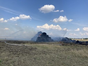 Soeben wurden wir zur Unterstützung der Feuerwehr Trebur alarmiert. Es brennen mehrere Stohballen. Unser GW-L bringt weiteres Material zur Brandbekämpfung an die Einsatzstelle. Auch die Kreisregner des Landkreis Groß-Gerau kommen zum Einsatz. Diese bewässern die Umgebung und tragen dadurch kräfteschonend zu einer effektiven Verhinderung der Brandausbreitung bei.