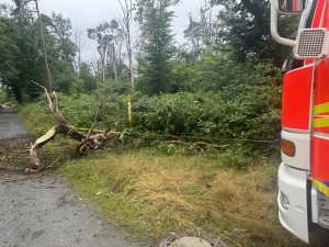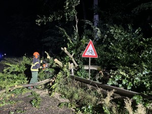 Im Laufe des Sonntages wurde die Feuerwehr Walldorf zu weiteren Unwetterbedingten Einsätzen alarmiert. Unter anderem wurde im Vitrollesring ein großer Ast von einem Baum entfernt, der auf den Gehweg zu fallen drohte.