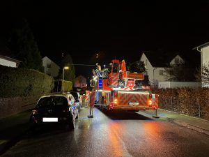 Gegen 18:30 Uhr wurden wir zu einem umgestürzten Baum auf die B 44 in Fahrtrichtung Zeppelinheim alarmiert. Dort war ein Baum auf die Fahrbahn gestürzt und ein Fahrzeug streifte anschließend diesen. Die Feuerwehr sperrte die B 44 und beseitigte mithilfe einer Kettensäge den Baum. Kurz nachdem die Kräfte wieder die Unterkunft erreichten, wurden wir über eine Weihnachtsbeleuchtung Höhe Bahnhof informiert die durch den Sturm abzustürzen drohte. Die Feuerwehr konnte die Weihnachtsbeleuchtung schnell fachmännisch entfernen.
