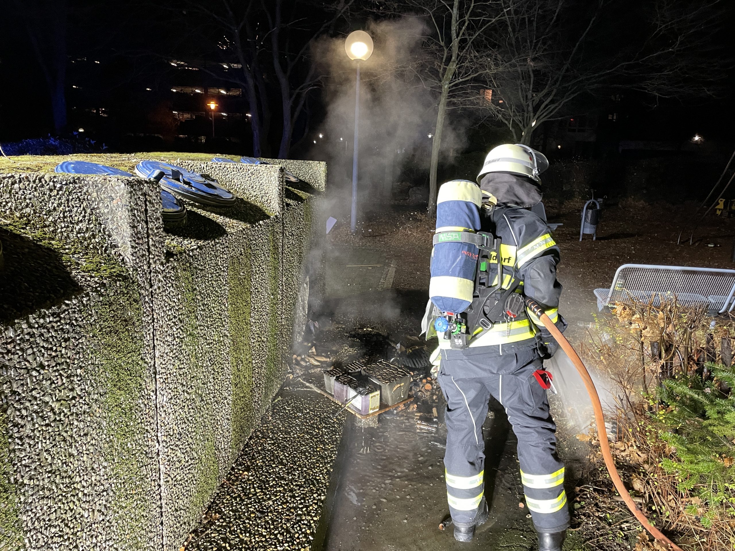 Der erste Einsatz im neuen Jahr ließ nicht lange warten. Um 01:58 Uhr wurden wir in den Wohnpark Walldorf alarmiert. Dort brannten mehrere Überreste von Feuerwehrkskörper an einer Mülltonne. Die Feuerwehr löschte den brannt mithilfe des Schnellangriffes.