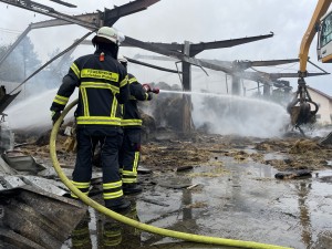 Die Feuerwehr Walldorf wurde am Donnerstag, den 05.10.2023 um 11:09 Uhr nach Egelsbach alarmiert. Dort brannten seit dem Vortag in einer Landwirtschaftlich genutzten Halle ca. 1500 Strohballen. Aus Walldorf wurde eine Löschgruppe mit Atemschutzgeräteträgern alarmiert um vor Ort die Arbeiten zu Unterstützen. Durch Landwirte und Baggerfahrer wurde den ganzen Tag über Stroh aus der Halle herausgefahren und dann von der Feuerwehr abgelöscht. Des weiteren wurden am Abend durch die Feuerwehr Walldorf die Kreisregner aufgebaut und in Betrieb genommen.