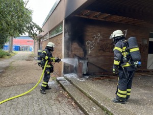 Die Feuerwehr Mörfelden-Walldorf wurde am Sonntag, den 06.08.2023 um 11:31 Uhr in die Waldstraße alarmiert. Vor Ort brannte ein Müllbehälter der sich unter dem Dach befunden hatte. Der Müllbehälter und Teile des Daches wurden mit einem C-Rohr abgelöscht. Desweiteren musste zum Teil die Holzverkleidung des Daches entfernt werden um an Glutnester zu gelangen. Durch das besonne Eingreifen von Pasannten konnte vor Eintreffen der Feuerwehr schlimmeres verhindert werden.