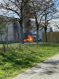 Am frühen Nachmittag des 14. Aprils wurden die Feuerwehren der Doppelstadt, sowie der Rettungsdienst und die OV des DRK Mörfeldens zu einem brennenden Wohnanhänger alarmiert. Der Wohnwagen stand direkt an einer Lagerhalle, die automatische Brandmeldeanlage der Halle hatte vor dem Eintreffen der Feuerwehr ausgelöst. Zudem waren zwei Gasflaschen im vorderen Bereich des Anhängers gelagert, welche durch die starke Wärme des Feuers bereits abzischten. Durch das erst eintreffende Feuerwehrfahrzeug wurde sofort ein Löschangriff durch einen Atemschutztrupp mit einem C-Rohr eingeleitet. Ein weiterer Trupp unterstütze diesen im weiterem Verlauf und die Gasflaschen konnten geborgen werden. Durch die Kameraden der EA Walldorf wurde die angrenzende Lagerhalle geprüft. Im Deckenbereich hatte sich Rauch gesammelt. Dieser zog durch das Öffnen von Dachfenstern natürlich ab. Die Polizei vermutet Brandstiftung, der Schaden ist derzeit unbekannt. 36 Einsatzkräfte der Feuerwehr waren mit neun Fahrzeugen vor Ort. Der Malteser-Rettungsdienst und das DRK Mörfelden waren jeweils mit einem RTW vor Ort, ebenso die Polizei mit zwei Streifenwagen.