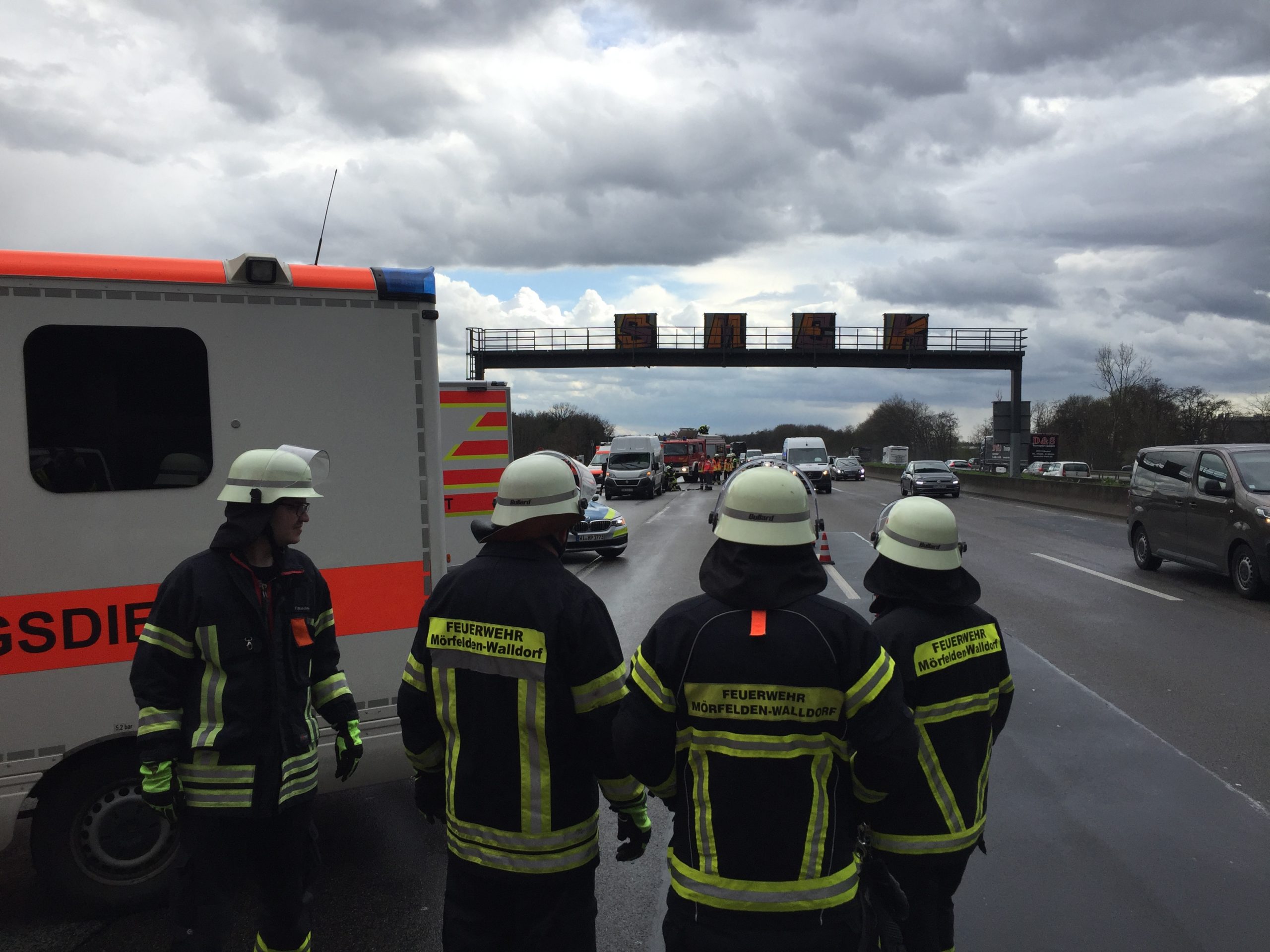 Die Feuerwehr Mörfelden-Walldorf wurde am Donnerstag, den 30.03.2023 um 16:01 Uhr auf die BAB 5 in Fahrtrichtung Zeppelinheim alarmiert. An der Einsatzstelle ergaben die Erkundungsmaßnahmen, dass es sich um einen Unfall zwischen einem Transporter und einem PKW handelte. Es waren glücklicher Weise keine Personen in ihren PKW eingeklemmt. 2 Verletzte Personen wurden bereits durch den Rettungsdienst versorgt. Die Aufgaben der Feuerwehr beschränkten sich auf das Absichern der Unfallstelle und auf die Aufnahme von auslaufenden Betriebsstoffen.