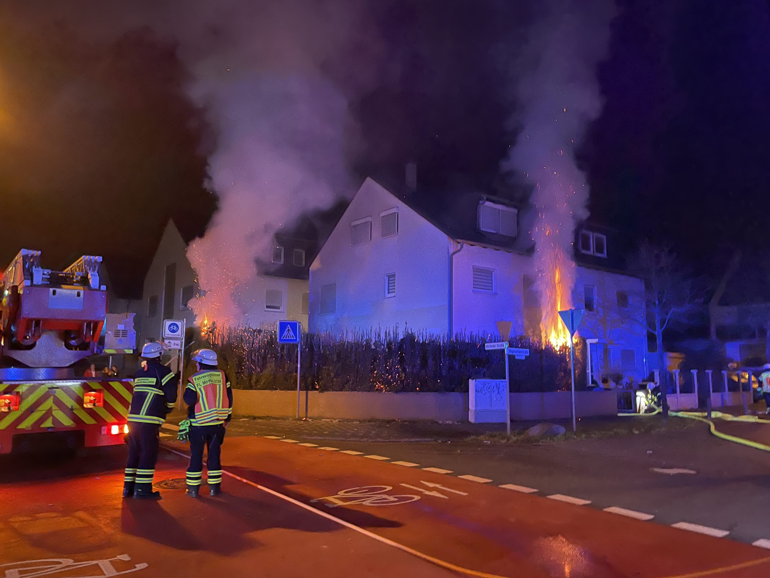 Zum zweiten Einsatz in der Neujahrsnacht wurde die Feuerwehr Mörfelden-Walldorf um 03:00 Uhr in die Mörfelder Straße alarmiert. Dort stand eine Gartenhecke auf ungefähr 20 Metern im Vollbrand und drohte auf das Haus und das Carport überzugreifen. Sofort baute die Feuerwehr einen zweiseitigen Löschangriff auf und verhinderte gleichzeitig ein Übergreifen der Flammen. Der Brand konnte schnell unter Kontrolle gebracht werden und der Einsatz um 03:45 Uhr beendet werden.