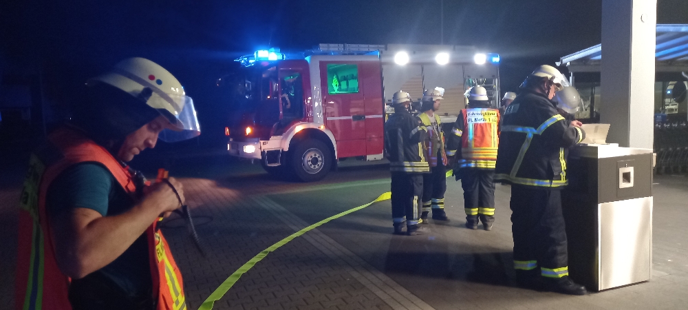 Noch auf der Rückfahrt vom Wasserrettungseinsatz am Badesee Walldorf wurde die Feuerwehr Mörfelden-Walldorf am Samstag, den 18.06.2022 um 23:42 Uhr zu einer ausgelösten Brandmeldeanlage in einem Supermarkt in der Opelstraße alarmiert. Vor Ort fanden die Einsatzkräfte eine brennende Müllpresse an der Laderampe vor und leiteten umgehend die Brandbekämpfung ein. Zwei Trupps unter Atemschutz mit zwei C-Rohren bekämpften das Feuer. Weitere Trupps kontrollierten den Supermarkt von innen, hier war eine leichte Verrauchung im Dachbereich feststellbar. Daraufhin wurden Teile der Dachverkleidung abgenommen und der Dachbereich über die Steckleiter mit der Wärmebildkamera kontrolliert. Glücklicherweise hatte der Brand sich aufgrund des schnellen Eingreifens nicht auf den Supermarkt ausgebreitet und nach dem Rückbau konnte der Einsatz beendet werden. Im Einsatz war die Feuerwehr Mörfelden-Walldorf mit neun Fahrzeugen und 41 Einsatzkräften.