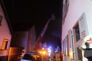 Nach dem Gebäudevollbrand am 29.11. erfolgte eine Brandnachschau am Abend.