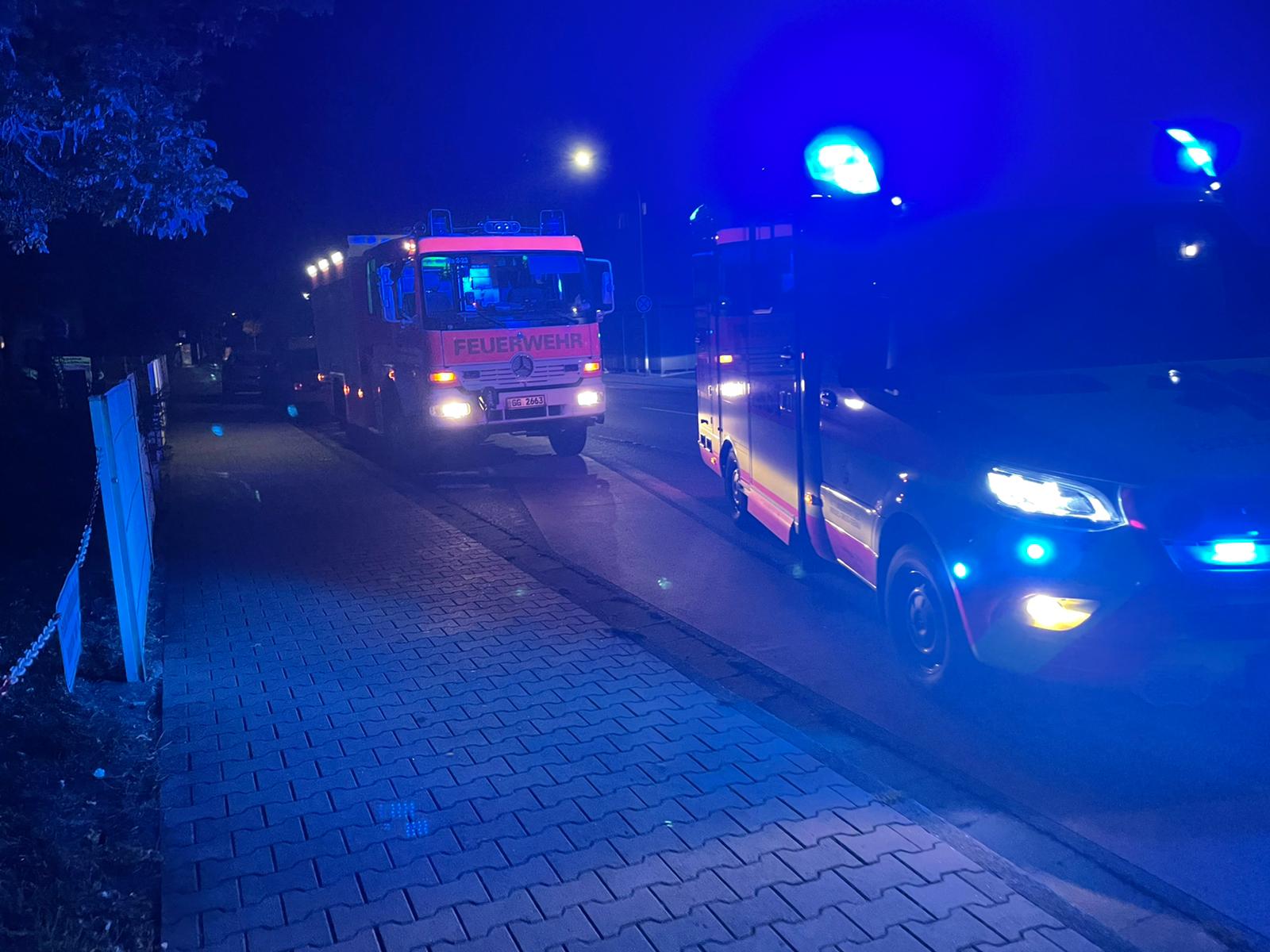 Die Feuerwehr Mörfelden-Walldorf wurde am Samstag, den 4.9.2021 um 23:23 Uhr mit der Meldung Gartenhüttenbrand An der Trift alarmiert. Schon auf der Anfahrt war ein Feuerschein in dem Gartengelände zu sehen und das Feuer drohte auf die benachbarten Hütten überzugreifen. Nach dem Eintreffen wurden sofort zwei Löschrohre vorgenommen um die benachbarten Hütten zu sichern. Dies gelang und ein übergreifen konnte verhindert werden. Es brannte eine Überdachung vor einer der Gartenhütten. Die Brandursache ist Bestandteil der polizeilichen Ermittlungen, ebenfalls zum Sachschaden kann keine Aussage getroffen werden. Von der Feuerwehr waren 7 Fahrzeuge mit 41 Einsatzkräften im Einsatz.