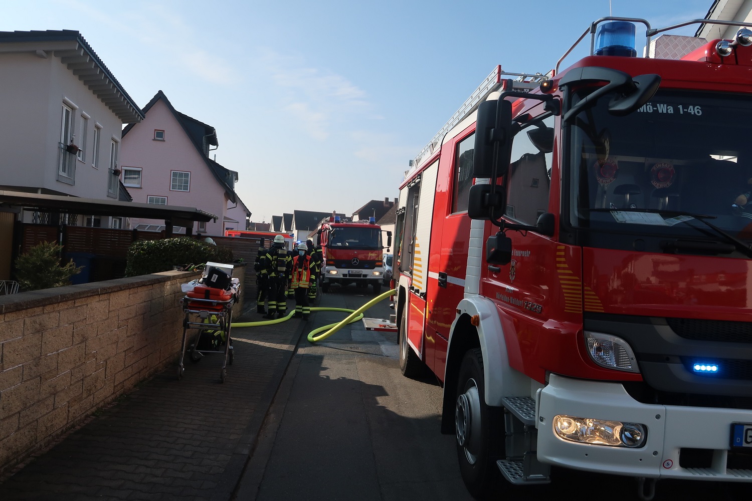 Die Feuerwehr Mörfelden-Walldorf wurde am Mittwoch, den 24.03.2021 um 8:56 Uhr mit der Meldung Wohnungsbrand Menschenleben in Gefahr in der Feldstr. alarmiert. Beim Eintreffen stand die Küche im Erdgeschoss in Vollbrand. Die 2 anwesenden Personen waren bereits aus dem Haus und wurden vorsichtshalber vom Rettungsdienst untersucht und blieben aber an der Einsatzstelle. Von der Feuerwehr wurde sofort ein Löschangriff von einem Trupp unter Atemschutz gestartet. Ein zweiter Trupp kontrollierte noch die Zimmer im ersten Obergeschoss. Nach dem Löschangriff wurden für die Nachlöscharbeiten einige Teile der Küche ins Freie gebracht und dort abgelöscht. Der Kellerbereich wurde ebenfalls von einem Trupp unter Atemschutz überprüft und es wurde Stromlos geschaltet. Das Wohnhaus ist unbewohnbar. Der Sachschaden wird von der Polizei auf ca. 150 000 Euro geschätzt. Die Brandursache war vermutlich erst kurz vor dem Feuer eingeschalteter Gefrierschrank. Im Einsatz waren von der Feuerwehr 9 Fahrzeuge mit 35 Einsatzkräften. Vom Rettungsdienst waren 3 Rettungswagen und ein Notarzt vor Ort sowie eine Streife der Polizeistation Mörfelden.