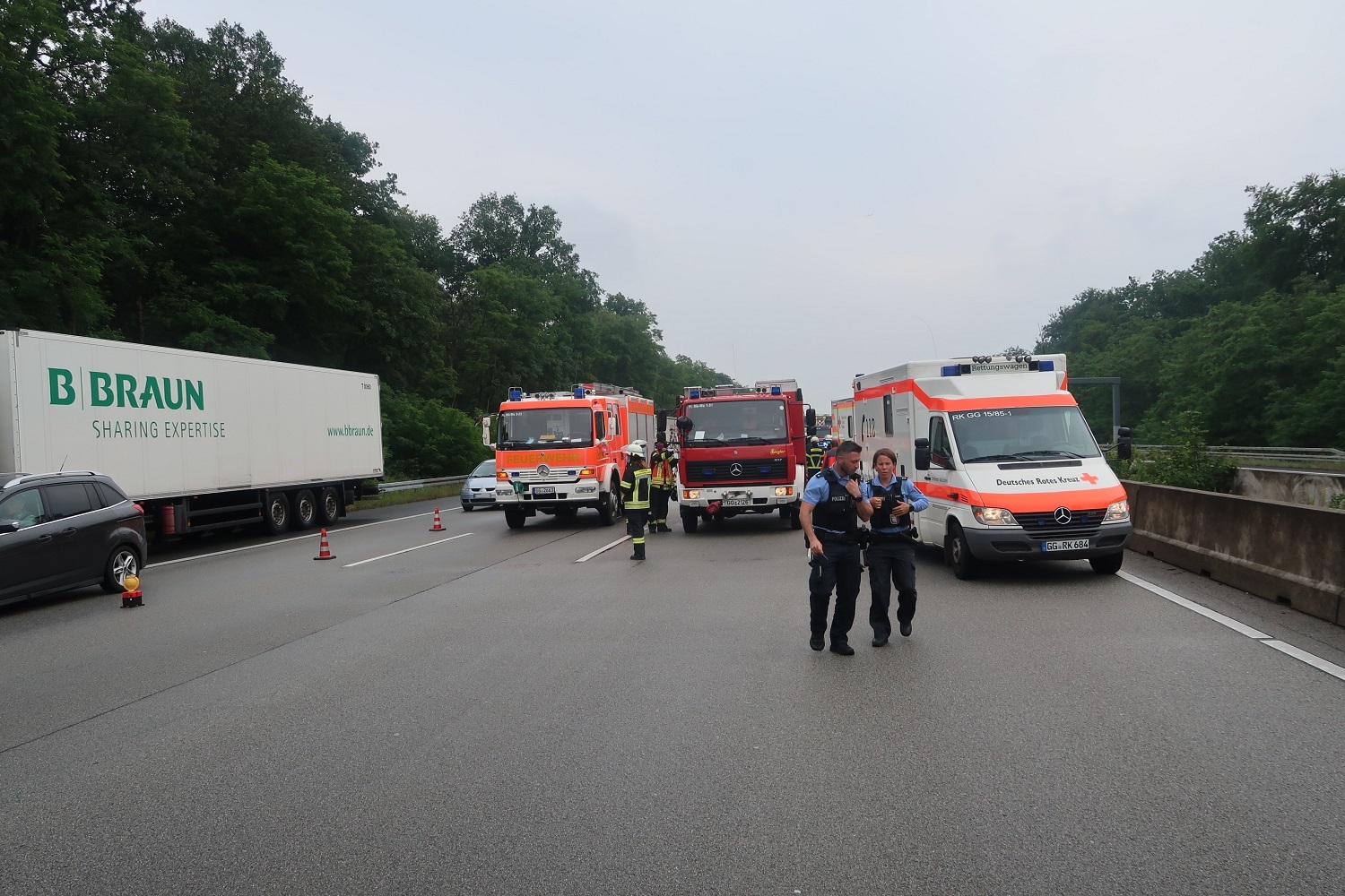 Beim Eintreffen standen 3 verunfallte Fahrzeuge auf der dritten und vierten Spur. Eingeklemmt war niemand. Zwei Fahrer wurden mit Verletzungen unbestimmten Grades in die Uniklinik nach Frankfurt gebracht. Von der Feuerwehr wurde bei einem Fahrzeug die Batterie abgeklemmt und der Brandschutz wurde sichergestellt.