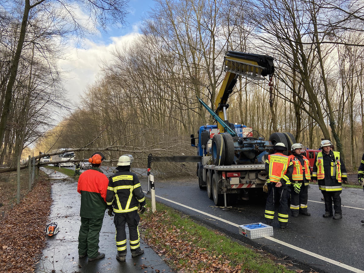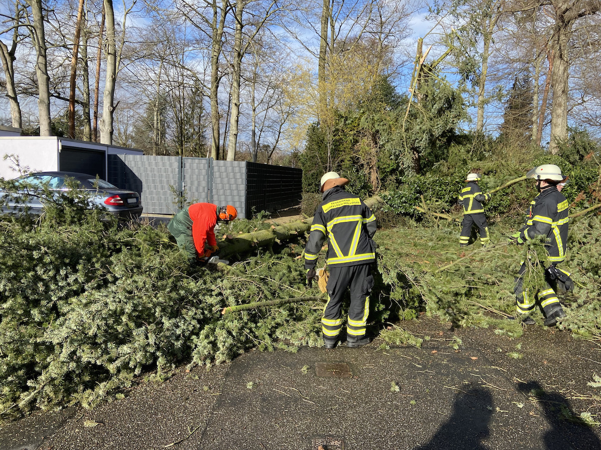 Im Kiefernweg drohte außerdem ein Baum auf einen Gehweg umzustürzen. Der Baum wurde durch die Feuerwehr gefällt.