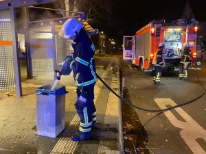 Zum letzten Einsatz am Neujahrstag wurde die Feuerwehr Walldorf an den Bahnhof alarmiert. Dort brannten zwei Müllbehälter. Die Feuerwehr löschte beide Müllbehälter ab und kontrollierte beide Einsatzstellen.
