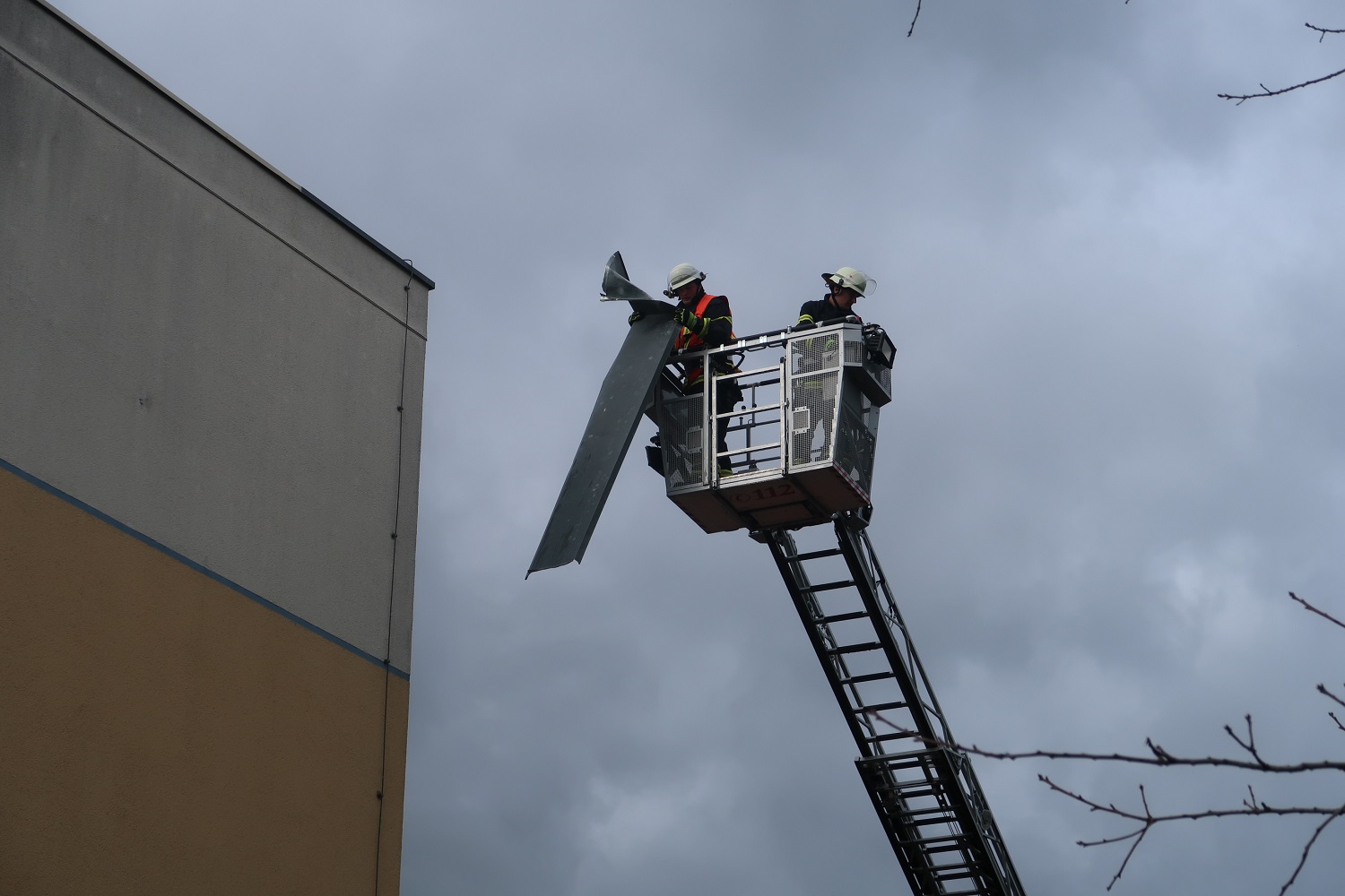 Die Feuerwehr Mörfelden-Walldorf wurde am Montag, den 03.02.2020 um 11:44 Uhr mit der Meldung hängen Bleche vom Dach am Tizianplatz. Beim Eintreffen stellte es sich heraus, dass 4 Bläche über dem Eingangsbereich eines vier geschössigen Mehrparteienhaus lose hingen. Von der Feuerwehr wurden mittels Drehleiter diese Bleche beseitigt, so dass keine Gefahr mehr bestand. Von der Feuerwehr waren 3 Fahrzeuge mit 12 Einsatzkräften im Einsatz.