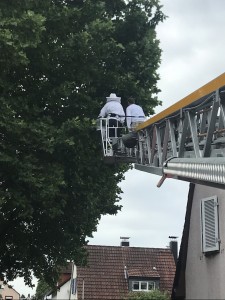 Am Freitagmorgen unterstützte die Feuerwehr Walldorf einen Imker, der einen Bienenschwarm einfangen wollte, da dieser auf der Suche nach einem neuen Nest war. Da sich der Bienenschwarm in luftiger Höhe befand, wurde der Imker per Drehleiter zum Schwarm gebracht. Nachdem der Schwarm eingefangen wurde, wurde dieser vom Imker umgesiedelt.