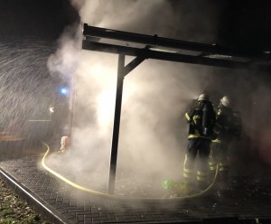 Am Samstagabend um 19:19 Uhr wurde die Feuerwehr Walldorf zu einem Carportbrand in die Straße an den Eschen alarmiert. Beim Eintreffen der Einsatzkräfte war das Feuer bereits durch die Anwohner und die Polizei weitestgehend gelöscht. Da das Carport direkt an die Hauswand gebaut war, wurde die Fassade des Gebäudes stark in Mitleidenschaft gezogen. Die Feuerwehr kühlte die Fassade und führte Nachlöscharbeiten aus. Weiterhin überprüfte die Feuerwehr das Wohnhaus nach Atemgiften. Um 21:30 Uhr wurde die Einsatzstelle an die Polizei übergeben und der Einsatz für die Feuerwehr beendet.