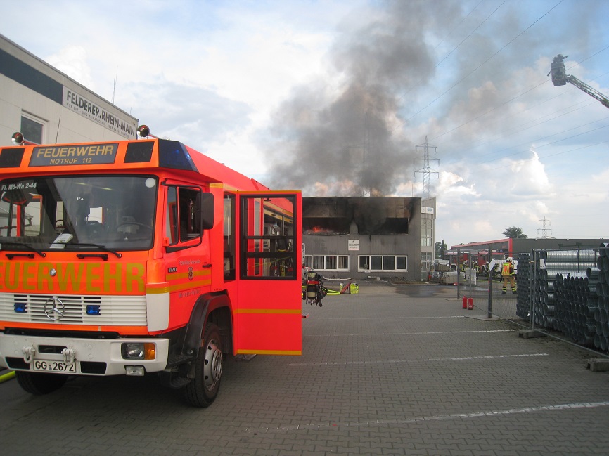 Dienstagabend waren die Feuerwehren aus Mörfelden-Walldorf, Kelsterbach, Groß-Gerau und Rüsselsheim zu einem Großbrand einer Lagerhalle im Industriegebiet im Einsatz.