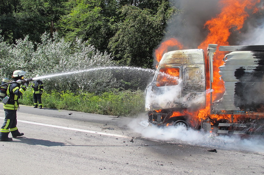 Die Feuerwehr Mörfelden wurde am Montag, den 01.08.2016 um 12:25 Uhr mit der Meldung „LKW Brand A 5 Fahrtrichtung Darmstadt“ alarmiert. Während der Anfahrt war schon eine schwarze Rauchwolke über der A 5 zu sehen.
