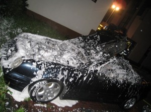 Am frühen Mittwochmorgen wurde die Feuerwehr Walldorf gegen 04:10 Uhr, zu einem PKW-Brand in die Flughafenstraße gerufen. Beim Eintreffen der ersten Kräfte stand das Fahrzeug bereits im Vollbrand. Sofort wurde ein Angriffstrupp unter Atemschutz zur Brandbekämpfung mit einem C-Rohr eingesetzt. Dieser konnte nach kurzer Zeit die Flammen niederschlagen und somit ein Übergreifen des Feuers auf ein benachbartes Fahrzeug verhindern. Anschließend öffnete die Feuerwehr die Motorhaube, bedeckte das Fahrzeug mit einem Schaumteppich, um ein erneutes Entflammen zu verhindern, und klemmte die Batterie ab. Um 05:40 Uhr war der Einsatz beendet. Im Einsatz waren die Polizei und die Feuerwehr Walldorf mit zwei Fahrzeugen.