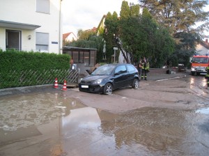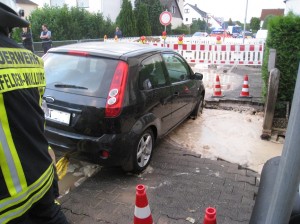 Am Montagmorgen um 05:23 Uhr wurde die Feuerwehr erneut in die Elbestraße zu einem Rohrbruch gerufen. Durch den massiven Wasseraustritt wurde ein größeres Loch in den Gehweg gespült und ein Fahrzeug drohte in dieses abzurutschen.