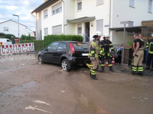 Zuerst sicherte die Feuerwehr das Fahrzeug mithilfe der Seilwinde des Hilfeleistungstanklöschfahrzeuges ab. Anschließend wurde das Fahrzeug mit der Seilwinde aus dem Gefahrenbereich gezogen.