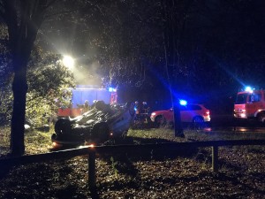 Heute Morgen um 07:03 Uhr wurden wir gemeinsam mit dem Rettungsdienst, dem Notarzt und der Polizei zu einem Verkehrsunfall auf die Aschaffenburger Straße Höhe Einfahrt Badestelle Walldorfer See alarmiert. Dort war ein Fahrzeug der Marke BMW von der Fahrbahn abgekommen und hatte sich anschließend überschlagen. Die Person die das Fahrzeug führte konnte sich bereits vor dem Eintreffen der Feuerwehr selbständig aus dem Fahrzeug befreien und wurde vom Rettungsdienst betreut. Die Feuerwehr sicherte die Unfallstelle und klemmte die Batterie ab.