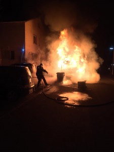 Am späten Donnerstagabend um 23:34 Uhr wurde die Feuerwehr Walldorf zu einem brennenden Kleintransporter in die Straße Am Wildzaun, Ecke Aschaffenburger Straße gerufen. Vor Ort bestätigte sich die Meldung. Die Feuerwehr fand einen Kleintransporter vor welcher im Vollbrand stand. Sofort ging ein Trupp unter schwerem Atemschutz vor und konnte durch eine gezielte Wasserabgabe das Überspringen der Flammen auf ein angrenzendes Fahrzeug und den angrenzenden Garten minimieren und schließlich unterbinden. Zeitgleich wurde die Brandbekämpfung des brennenden Kleintransporters mithilfe eines weiteren Angriffstrupps und Löschschaumes forciert. Mit vereinten Kräften konnte der Brand rasch unter Kontrolle gebracht und gelöscht werden.