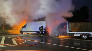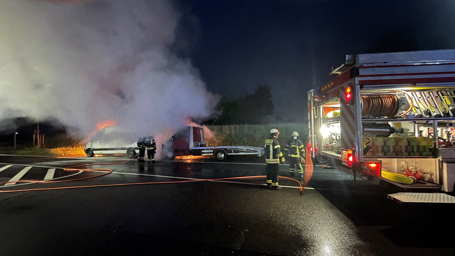 Die Feuerwehr Mörfelden wurde am Samstag, den 05.06.2021 um 22:17 Uhr mit der Meldung brennt Grasfläche in der Industriestr. alarmiert. Beim Eintreffen des Einsatzleiters standen 2 Kleintransporter im vorderen Bereich in Vollbrand. Daraufhin wurde das Einsatzstichwort erhöht und die Feuerwehr Walldorf alarmiert. Bei einem dritten Transporter hatte es auch angefangen zu brennen dieses Feuer konnten noch im Keim erstickt werden. Die 2 Transporter wurden mit einem C- Rohr und anschließend mit Schaum abgelöscht. An den Fahrzeugen entstand erheblicher Sachschaden. Warum das Feuer ausbrach wird von der Polizei noch ermittelt. Während der Löscharbeiten war die Industriestr. voll gesperrt. Von der Feuerwehr Mörfelden waren 4 Fahrzeuge mit 20 Einsatzkräften im Einsatz. Die Feuerwehr Walldorf konnte die Einsatzfahrt abbrechen.