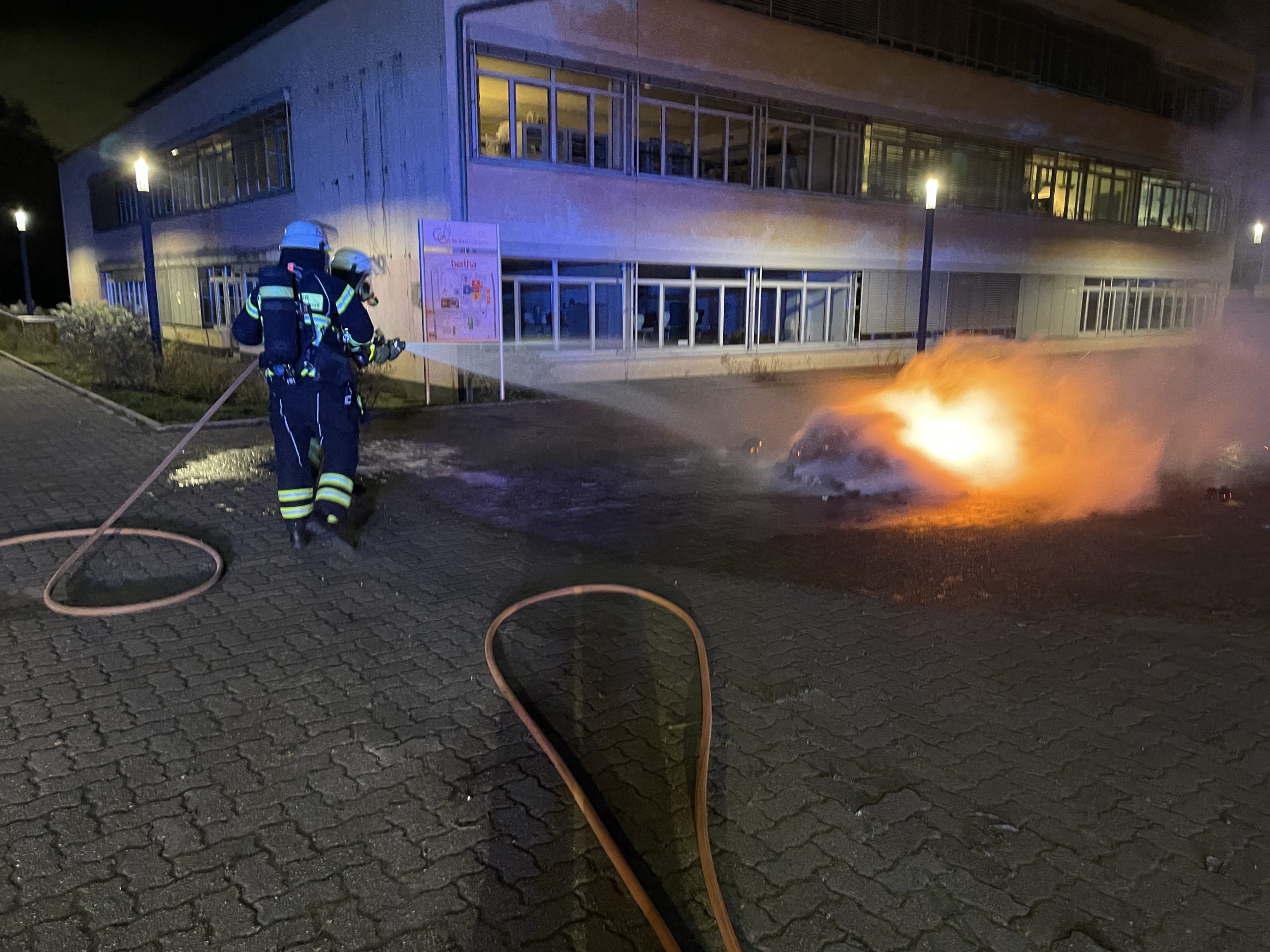 Am Samstagabend um 20:17 Uhr wurde die Feuerwehr Mörfelden-Walldorf auf das Gelände der Gesamtschule alarmiert, nachdem dort ein brennender Müllcontainer gemeldet worden war.