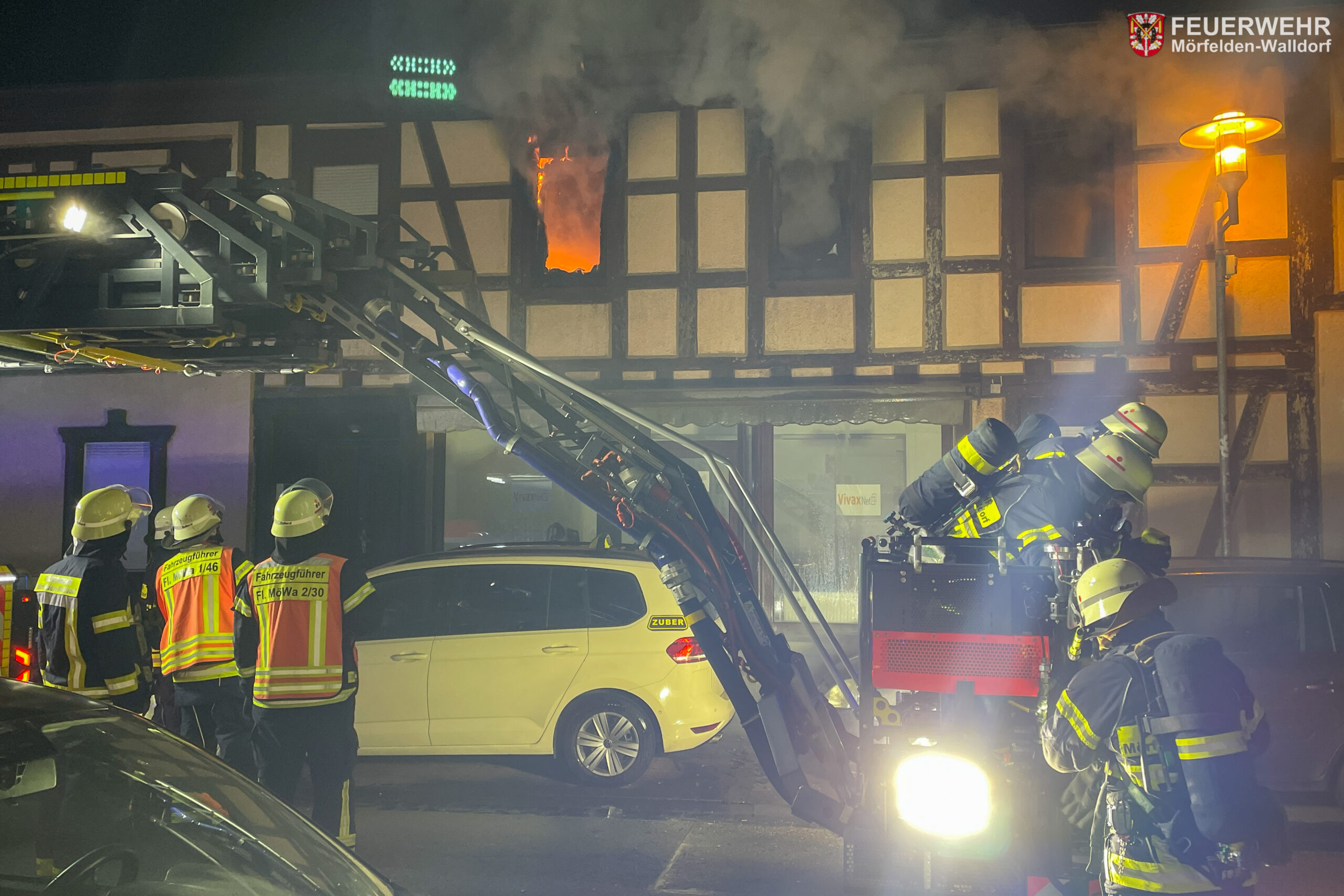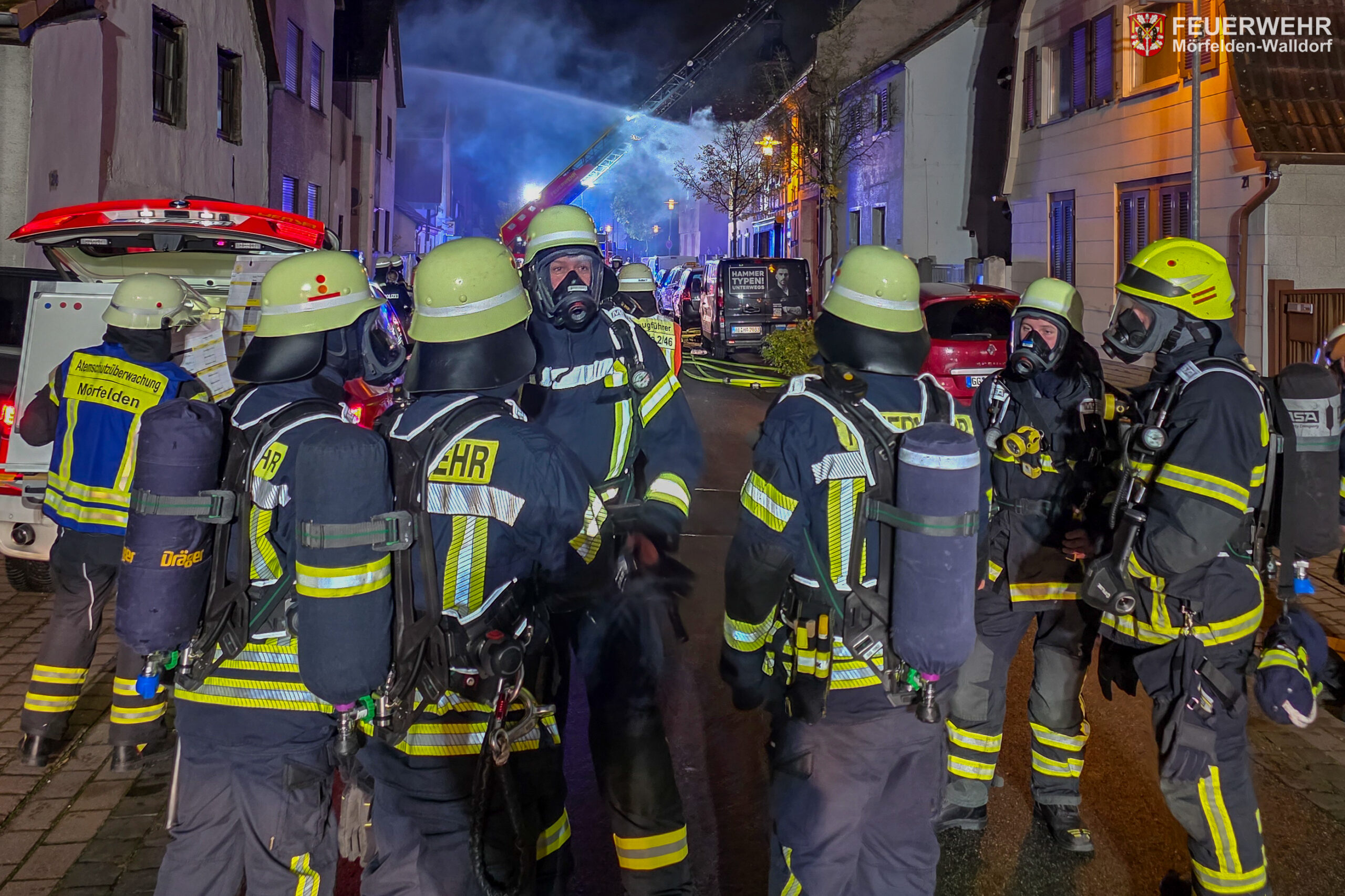 In der Nacht von Samstag auf Sonntag wurde die Feuerwehr Mörfelden-Walldorf zu einem Zimmerbrand mit Menschenleben in Gefahr in die Mörfelder Altstadt alarmiert. In der Langgasse sollte im 1. Obergeschoss eines Wohn- und Geschäftsgebäudes ein Bett brennen.